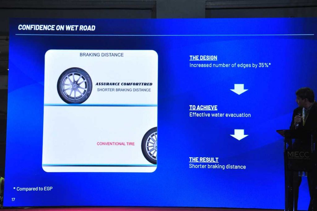 The Assurance ComfortTred, customised specifically for luxury passenger cars, has been priced from RM420 to RM860 with 12 sizes for choice and is manufactured in the company’s facility in China.