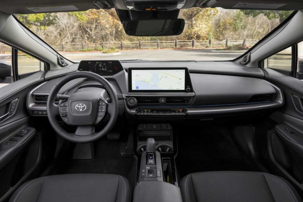 Additional features for the Prius can include six USB-C ports, electronic parking brake, man-made SofTex-wrapped steering wheel, blind spot monitoring system with rear cross-traffic alert, front and rear parking assist with automatic braking, automatic wipers, a smart key system, wireless charger, panoramic glass roof and a digital key.
